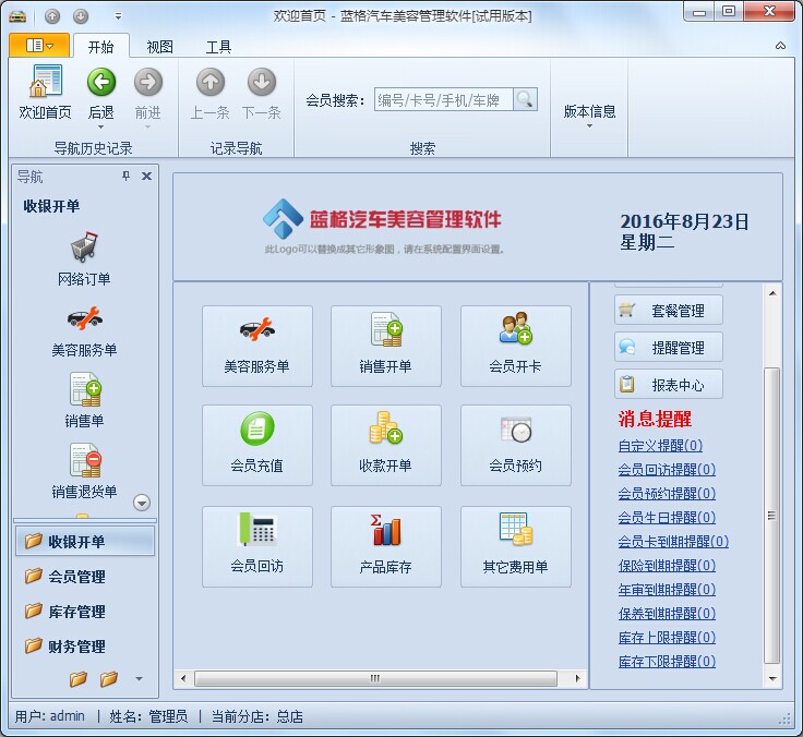 汽車美容管理軟件-首頁(yè)模塊介紹