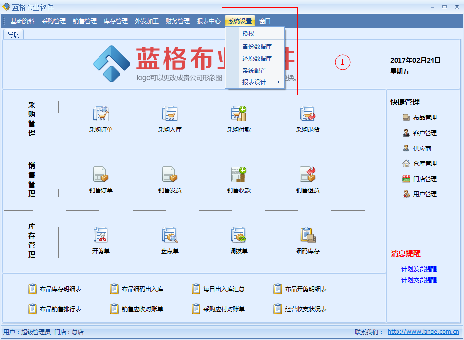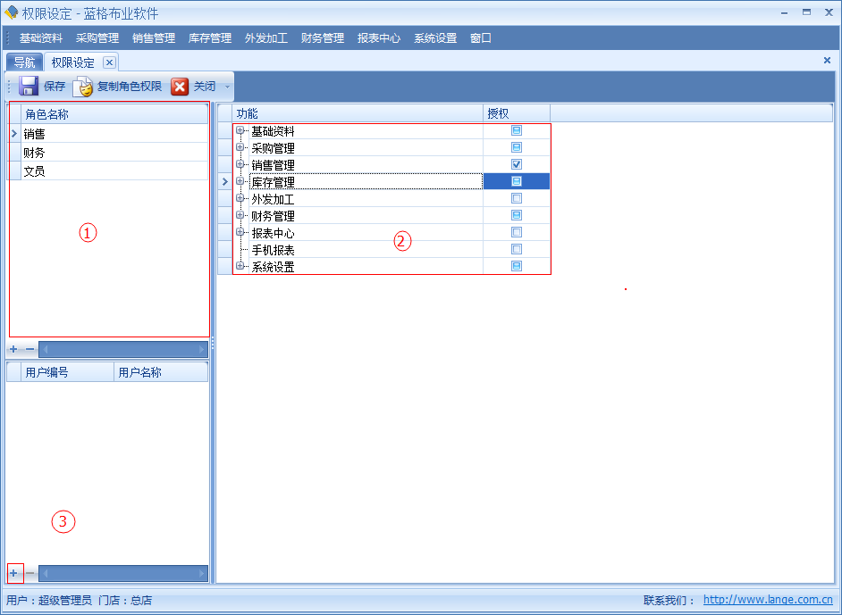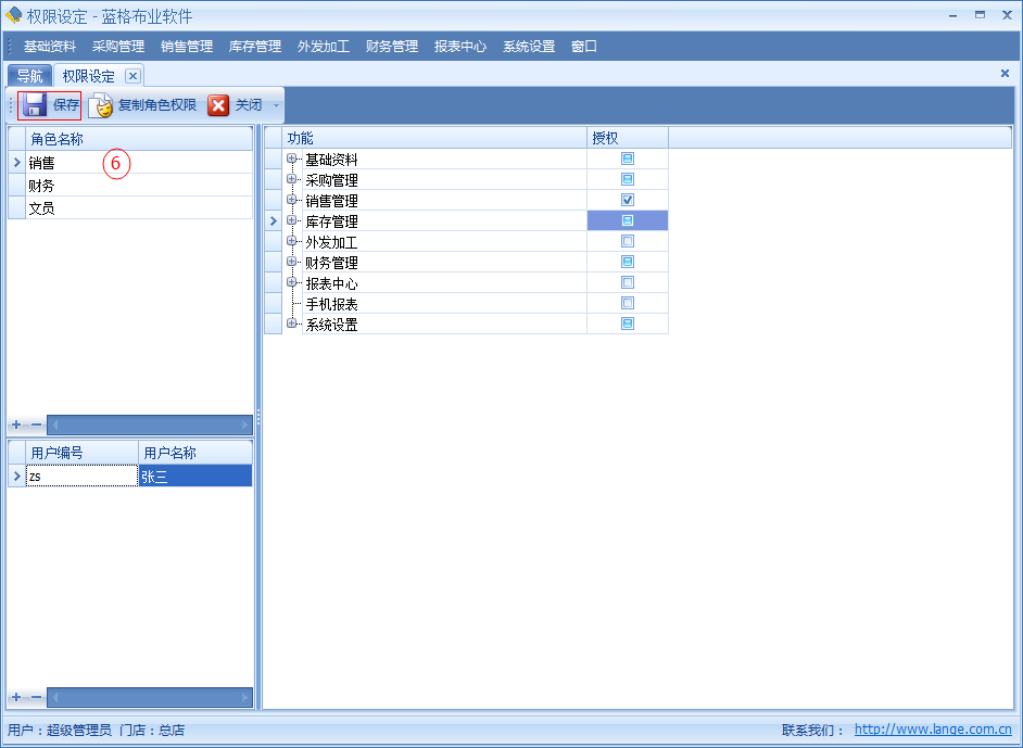 不同的操作用戶應(yīng)該具有不同的操作權(quán)限,避免重要數(shù)據(jù)泄露,在傲藍布匹管理系統(tǒng)中是如何實現(xiàn)的呢?