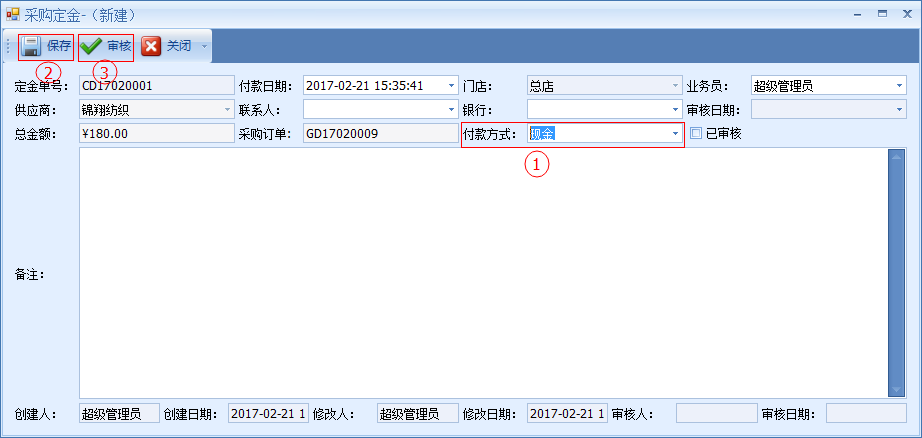 ○1 定金比率按百分比輸入,保存并審核