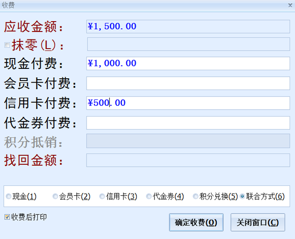 上圖數(shù)據(jù)保存好后,點(diǎn)擊【結(jié)算】,彈出結(jié)算窗口,如下圖所示: