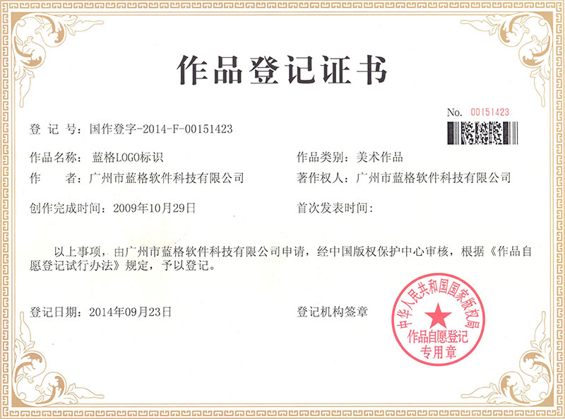 傲藍眼鏡店軟件著作權證書