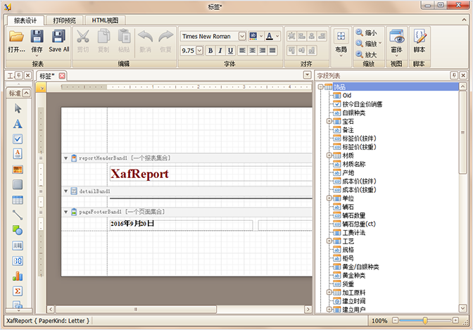 傲藍珠寶銷售管理軟件內嵌一個強大的報表設計功能,點擊【報表中心】--【報表設計】,軟件的左側出現(xiàn)很多現(xiàn)成的報表,顯示出來的所有報表都可以自定義設計。珠寶銷售管理軟件的常用標簽設計工具介紹