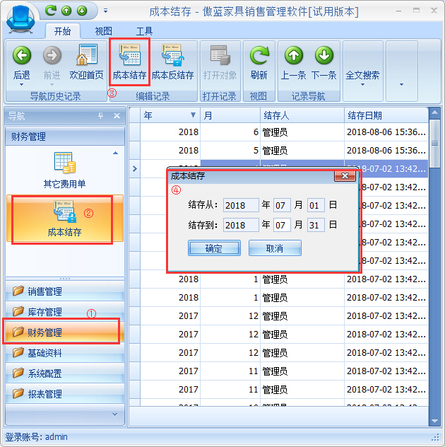 傲藍家具店銷售管理軟件在進行利潤核算之前必須要進行成本結存,沒有結存的采購訂單成本就不能產生利潤,因為沒有結存的采購單就有可能是還在銷售的商品;以完成成本結存的采購單和銷售單據,將不能新建和修改,保證了店鋪內的商品利潤的精準度。
