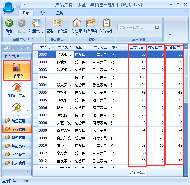 傲藍家具商城管理軟件協助商場的管理好門店的庫存,連鎖家具店可以在總店中統一管理庫存,方面將各個地方的庫存進行合理的調配,實現家具銷售大化,那么店內產品的庫存如何在軟件中查詢呢?