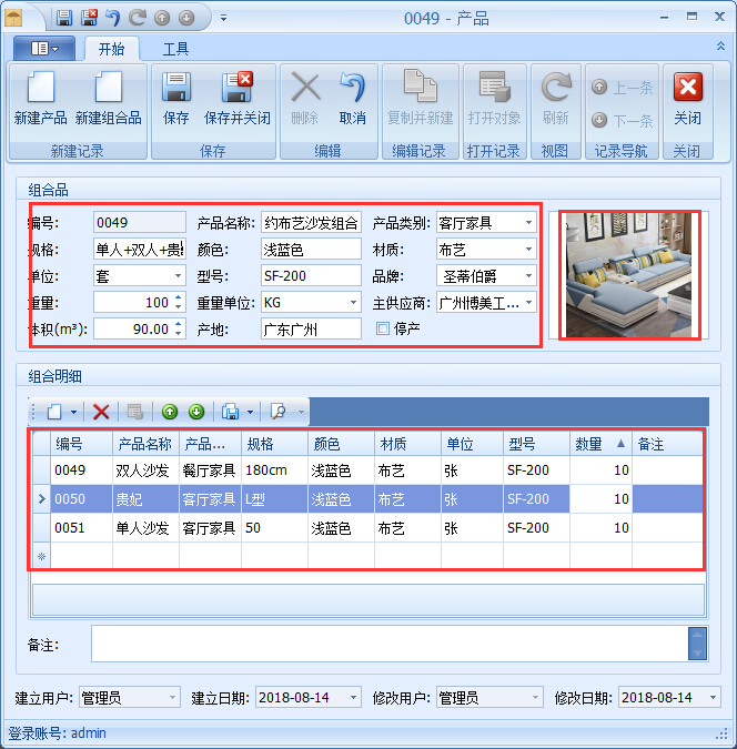 家具店組合產品如何錄入到傲藍家具門店管理系統中?