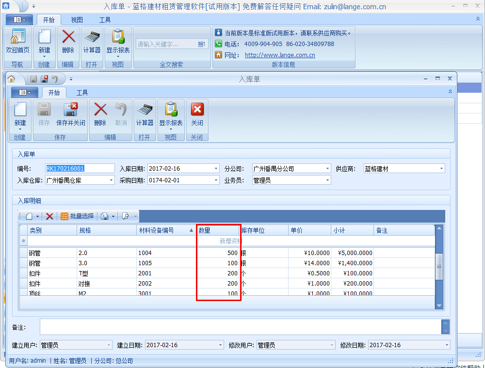 在傲藍(lán)建材租賃管理軟件里建立新的入庫單,在入庫單想要修改產(chǎn)品的數(shù)量,結(jié)果不能輸入數(shù)字是什么原因?