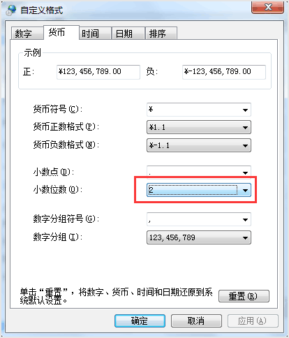 4.進入其他設置,找到貨幣,將小數點的位數默認為2