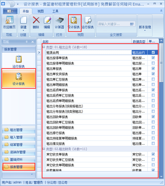 建材租賃管理系統(tǒng)自定義報表設(shè)計