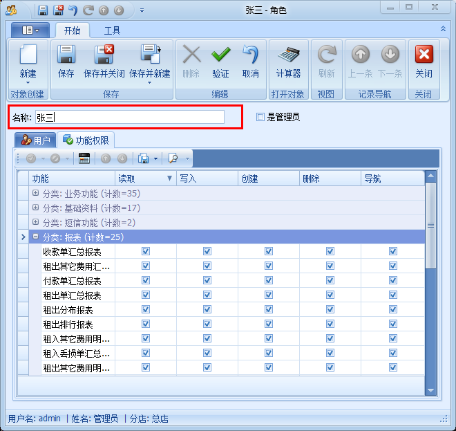 讀取:打鉤表示該角色可以閱讀查看該功能或報(bào)表內(nèi)的內(nèi)容