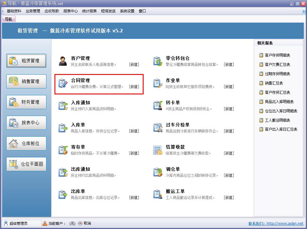 更多傲藍冷庫管理軟件,請關注傲藍軟件官方網站:http://m.hh10.cn/lengku/