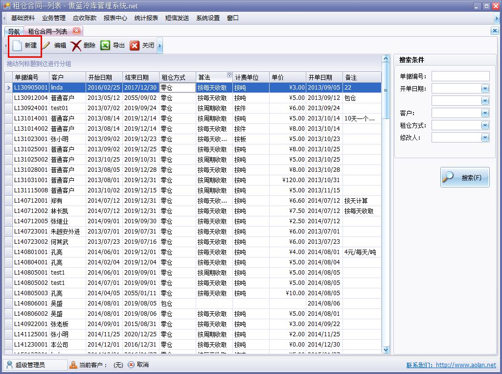 點擊【業務管理】→【租賃管理】→【合同管理】打開合同管理界面,如圖: