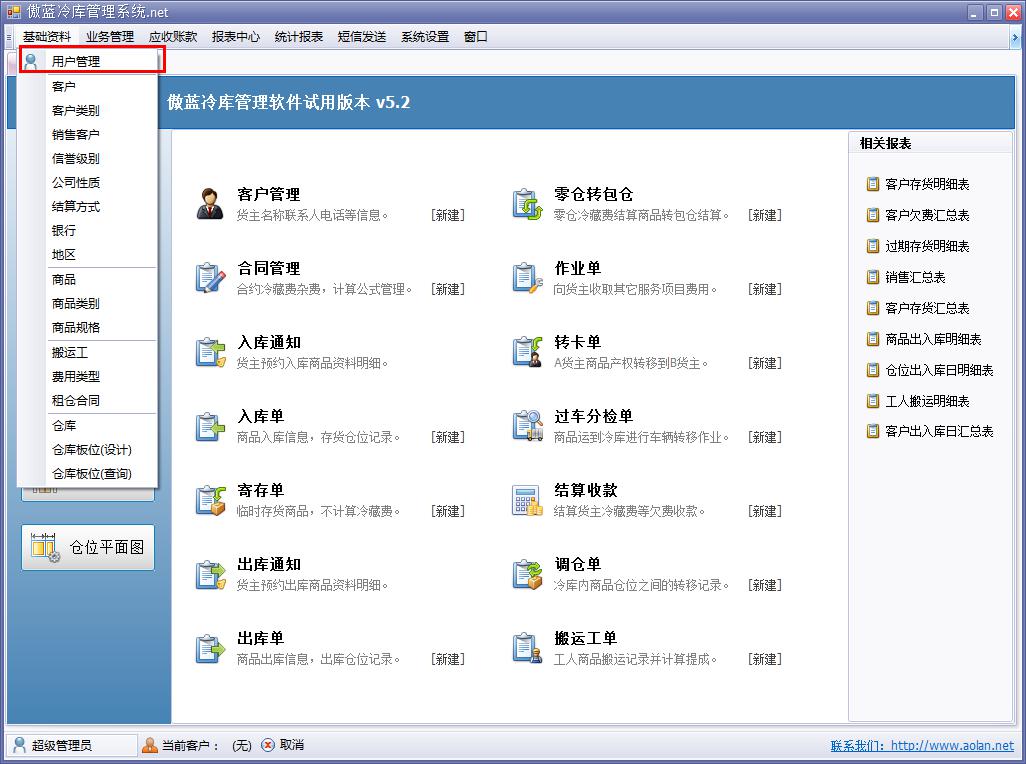 更多傲藍冷庫管理軟件,請關注傲藍軟件官方網站:http://m.hh10.cn/lengku/