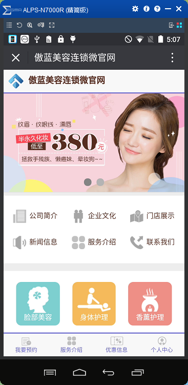 5、美容院微信公眾號微官網,展示美容院的整體實力,或是宣傳門店的優惠信息,如圖:
