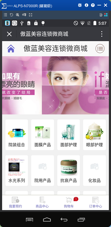 6、傲藍美容院微信會員系統中的微商城,則是美容院的電子商城,展示美容產品,會員可通過微商城購買自己看中的美容產品,無需再花時間去到門店去購買,如圖: