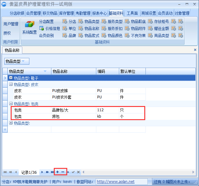 皮具護理店如何在傲藍皮具護理店管理軟件上添加護理物品名稱、類型