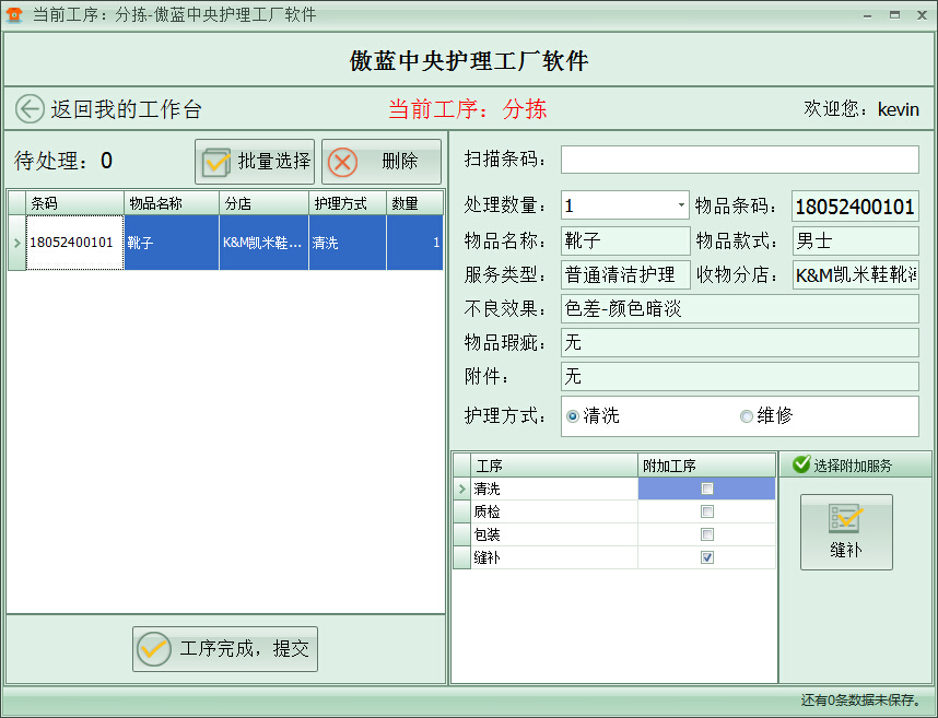 傲藍皮具護理工廠管理軟件專為護理工廠設(shè)計,分揀、清洗、護理、維修、質(zhì)檢、包裝、縫補、等業(yè)務(wù),還可以根據(jù)業(yè)務(wù)自定義工序,與護理門店軟件完美結(jié)合。