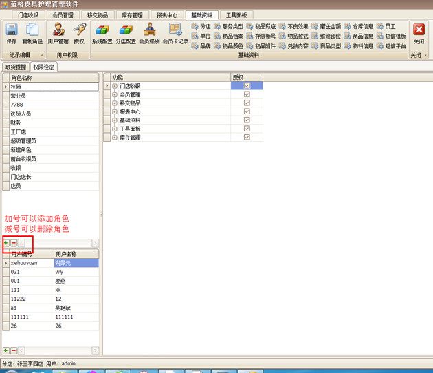 傲藍皮具護理管理軟件的用戶管理,可以用超級賬號admin建立子賬戶,并在授權時管理每個員工的操作權限,讓每個員工分工明確,做事井然有序。