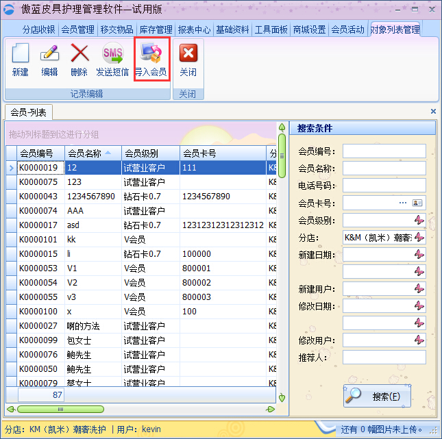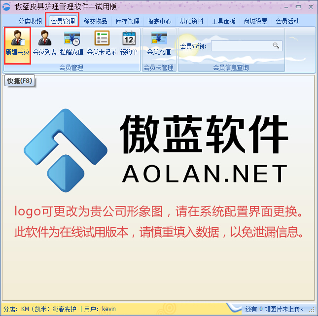 傲藍皮具護理管理軟件可以管理到會員的信息建立,或者導入會員,會員資料的管理,也可以實現為會員充值管理,接下來我們來看如何實現: