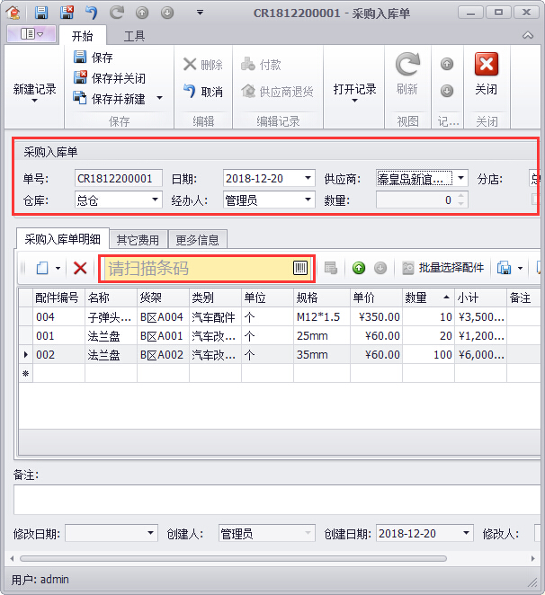 軟件支持兩種配件入庫操作:批量和單個配件產品入庫。