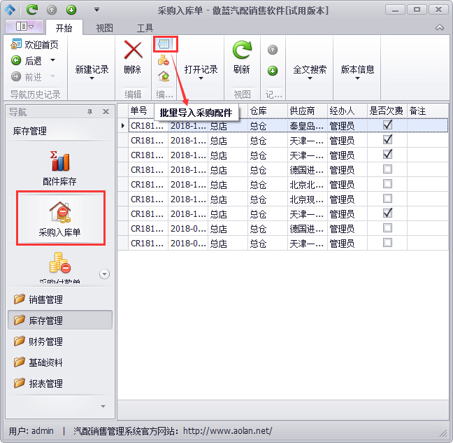 傲藍汽車配件零售店管理軟件采購入庫單具體操作說明,請點擊視頻鏈接了解。