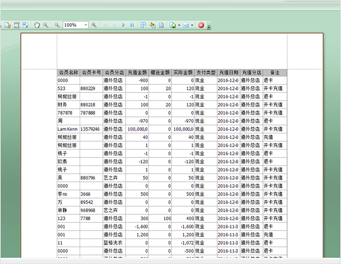 2、進入干洗店會員管理軟件的“會員充值明細報表”以下的顯示如圖: