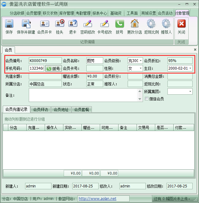 傲藍洗衣店管理軟件會員管理的具體操作步驟:
