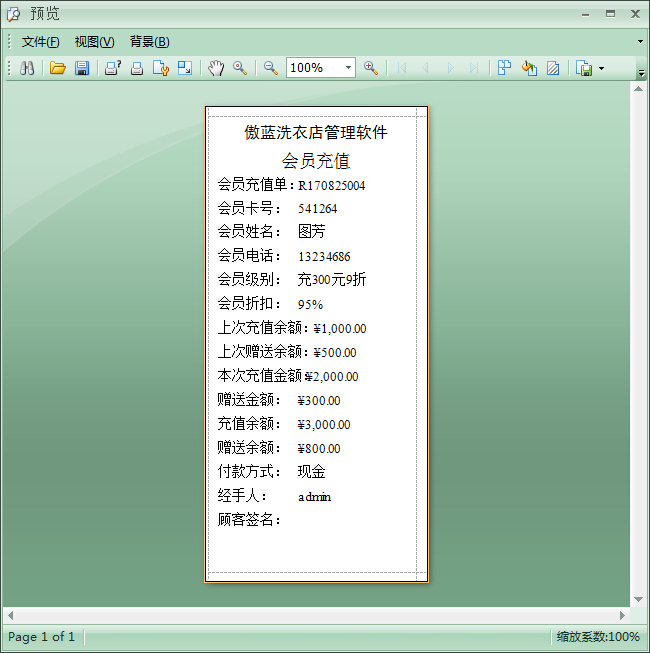 5、小票打印,軟件還支持在會員充值完成之后,打印小票,為后續的售后服務提供依據,如圖: