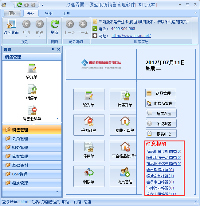 的提醒功能可以顯著提升軟件的實用性,那么傲藍眼鏡店銷售管理系統可以幫助眼鏡店做出哪些重要的提醒?