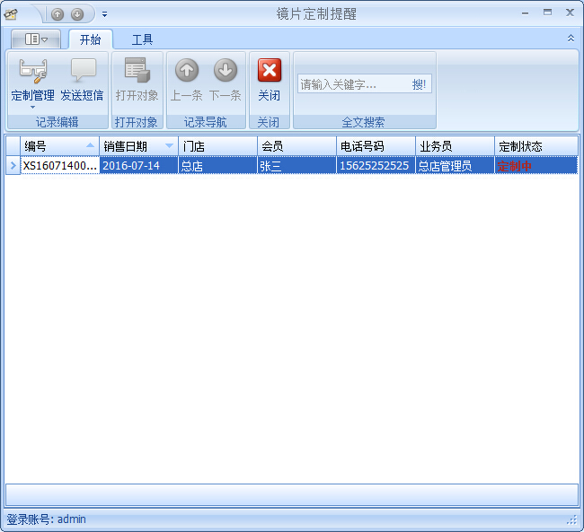 4、鏡片定制提醒,可以在傲藍眼鏡店銷售管理系統中快速查詢正在定制的鏡片,監督好定制的進度,按時完成,讓客戶能定時取鏡,如圖:
