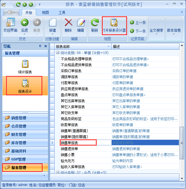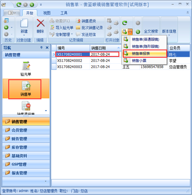 2、銷售單報表字段添加完成,保存之后,在傲藍眼鏡店銷售管理軟件查看銷售單明細報表,如圖: