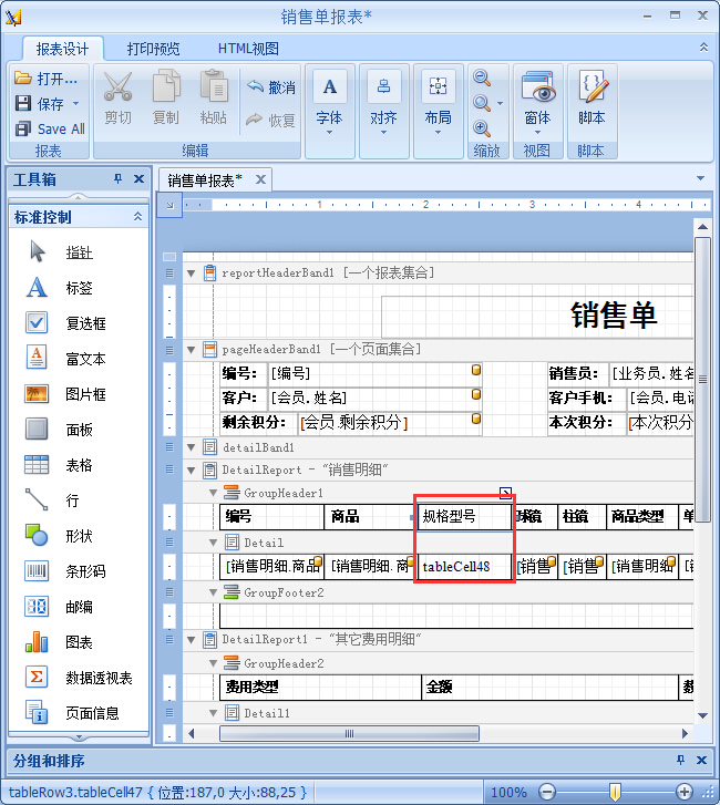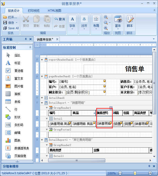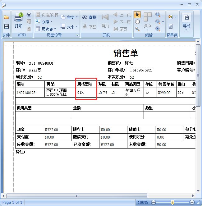 ①預覽修改后的銷售單明細報表,新添加到銷售單上字段及字段明細,已經成功添加,如圖: