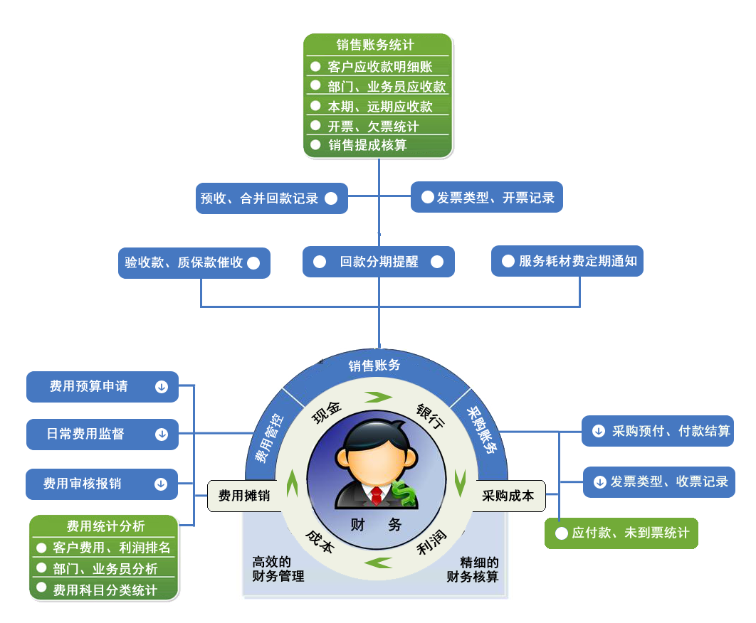 一個(gè)企業(yè)的財(cái)務(wù)管理包含了銷(xiāo)售回款、應(yīng)收款、銷(xiāo)售開(kāi)票、采購(gòu)付款、應(yīng)付款、采購(gòu)收票、成本核算、費(fèi)用報(bào)銷(xiāo)、固定資產(chǎn)、薪資統(tǒng)籌等貫穿了整個(gè)公司的資金流才是全面的財(cái)務(wù)管理。然后,企業(yè)可以根據(jù)財(cái)務(wù)管理中的數(shù)據(jù)進(jìn)行分析,設(shè)法在經(jīng)營(yíng)管理過(guò)程中實(shí)現(xiàn)“開(kāi)源”、“節(jié)流”,受實(shí)現(xiàn)企業(yè)的利潤(rùn)大化,這才是醫(yī)療設(shè)備行業(yè)財(cái)務(wù)管理的目的所在。