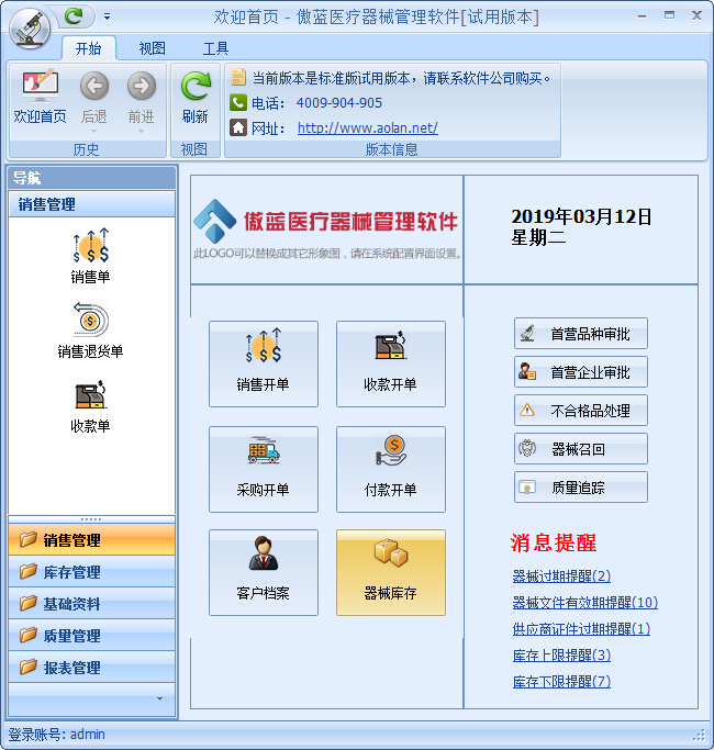傲藍(lán)醫(yī)療器械銷售管理軟件包含六大主要功能模塊